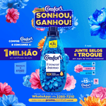 O Amaciante Concentrado Comfort Frescor Intenso tem 10x mais perfume** de longa duração, por isso deixa suas roupas perfumadas por muito mais tempo. Sua formulação incrível possui cápsulas de perfume que são liberadas durante a lavagem para deixar uma fragrância duradoura nas suas roupas e blindar o tecido contra o mau odor****. Comfort concentrado possui perfume encapsulado que penetra no tecido durante o processo de lavagem, deixando sua roupa muito mais cheirosa até mesmo depois de seca! O motivo? Quando você se movimenta, essas cápsulas de perfume para roupas se rompem e liberam essa fragrância incrível, fazendo com que aquele cheirinho de roupa lavada dure muito mais! Além disso, sua fórmula contém óleo de argan*****, um óleo natural com alto potencial nutritivo, que perfuma e trata suas roupas, prevenindo os danos da lavagem, mantendo as cores*** do tecido vibrantes por mais tempo, evitando a formação de bolinhas*** e esgarçamento***. Comfort te oferece tudo isso com um ótimo rendimento, por ser concentrado, menos de meia tampinha basta*, rende muito! Além de cuidar e perfumar suas roupas, o amaciante concentrado Comfort cuida do meio ambiente, sua garrafa e tampa são feitas com plástico 100% reciclado e reciclável. O Amaciante Concentrado Frescor Intenso cuida das suas roupas, pois possui ingredientes capazes de alinhar e proteger o tecido, reduzindo o atrito entre as fibras durante o processo de lavagem, evitando futuros danos nas peças.