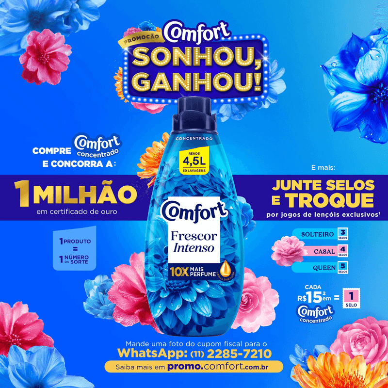 • O amaciante de roupas Comfort tem 10x mais perfume** de longa duração, que deixa suas roupas perfumadas por muito mais tempo