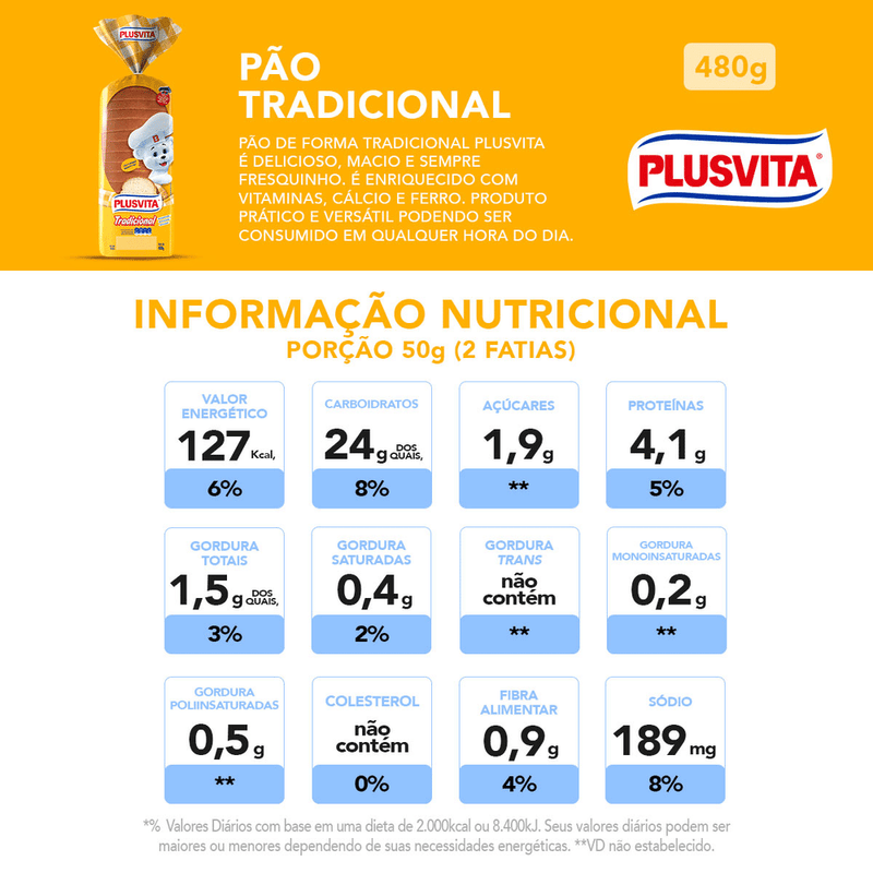 AlimentosPães, Torradas e BolosPães de FormaPão De Forma Tradicional Plusvita 480g